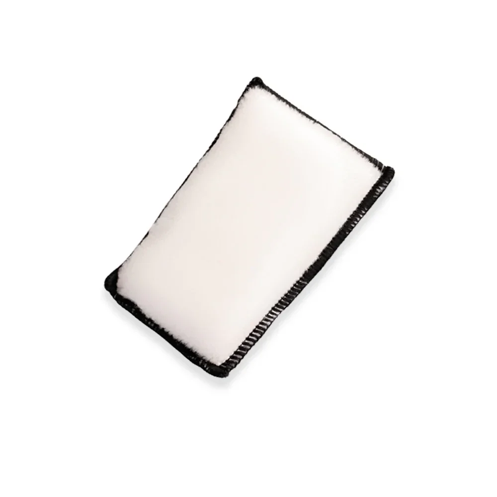 Jeder Schwamm ist mit zwei unterschiedlichen Seiten bestückt. Eine Seite mit weichen Borsten und die andere mit einer Mikrofaser-Fottier Schicht. Die weichen Borsten können Reiniger hervorragend in Textilien, Polster, Leder, Kunststoff usw. einarbeiten und somit auch tiefsitzenden Dreck anlösen. Das weiche und saugfähige Frottier-Material eignet sich anschließend ideal zur Aufnahme der angelösten Verschmutzungen. Alle Materialien sind absolut materialschonend und der Interior Sponge somit der perfekte Begleiter für jegliche Reinigungen im Fahrzeuginnenraum.